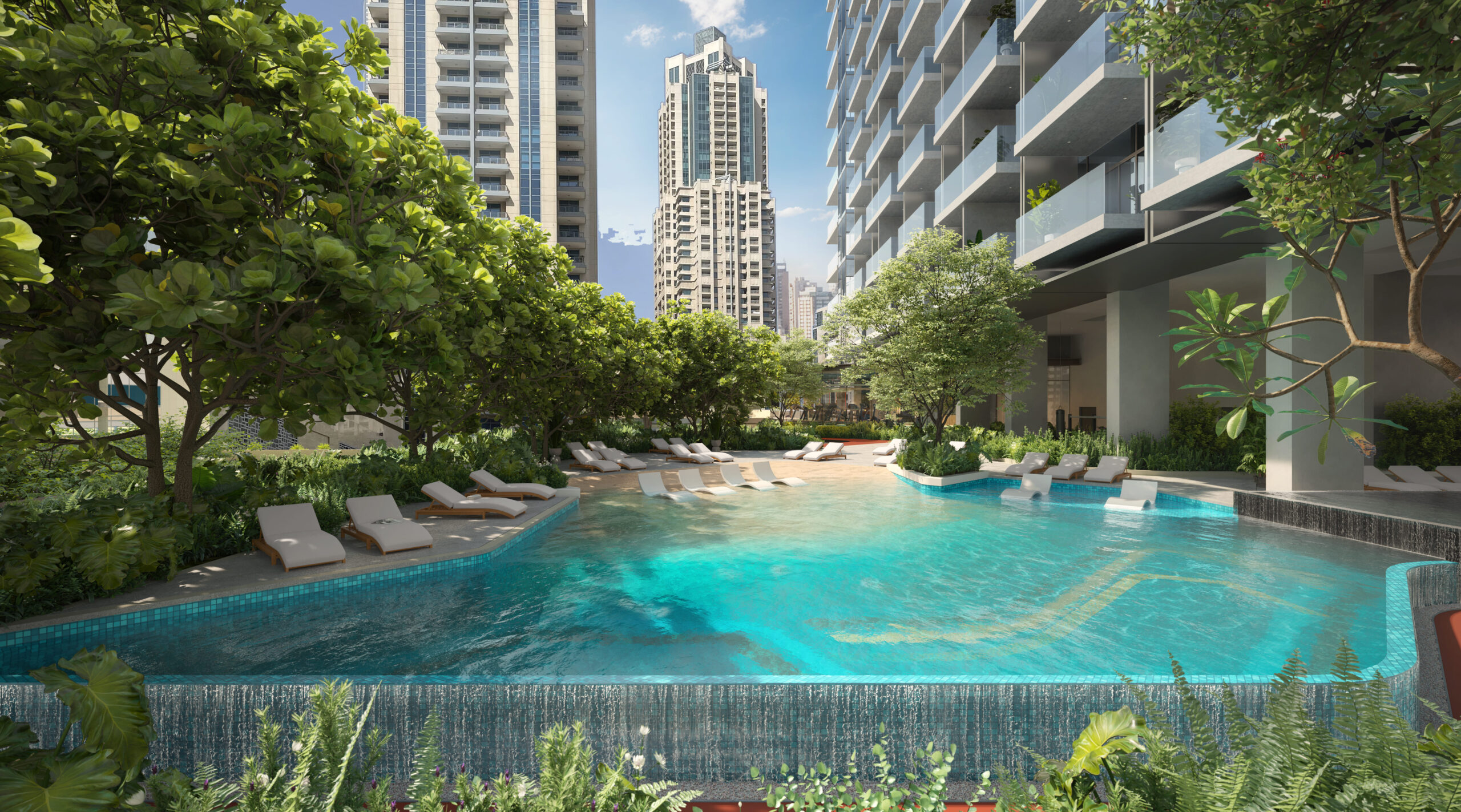 World-class amenities: gym, pool, spa, Jacuzzi, barbecue areas, kids’ play zone, and co-working spaces