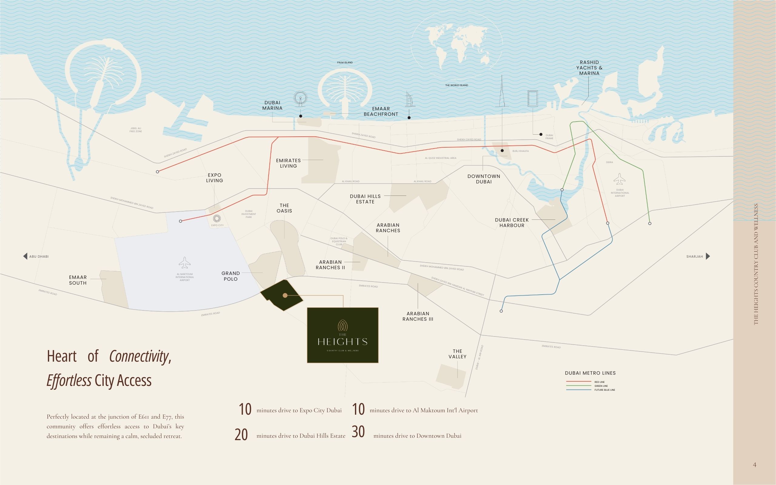 • Prime location near Expo City Dubai, with direct access to Emirates Road (E611) and Sheikh Mohammed Bin Zayed Road (E311)